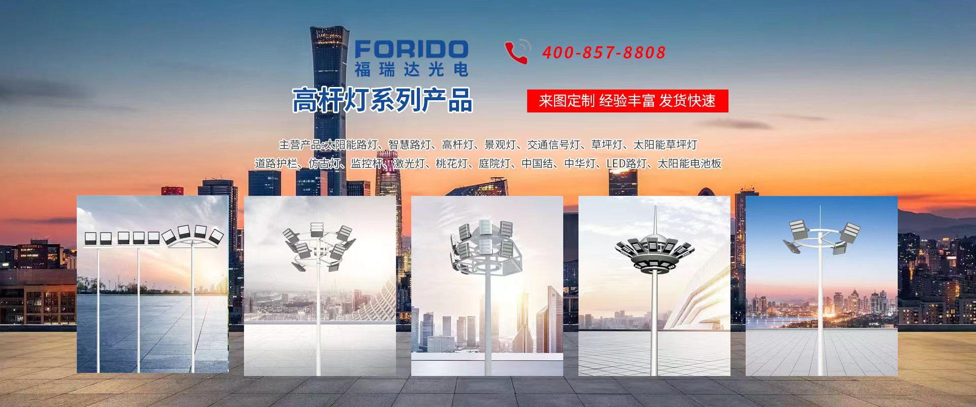 揚州福瑞達光電科技有限公司位于淮左名都歷史文化名城、中國路燈制造基地揚州市北郊菱塘工業園,公司占地面積76000平方米,注冊資金10518萬元,擁有高級技術嫻熟的員工280多人,擁有大型折彎機、激光切割、數控注塑機、壓鑄機、自動埋弧焊、氣焊、彩色粉末靜電噴塑等大型自動化設備,我公司是一家集設計、研發(fā)、生產、銷售、施工安裝服務為一體的戶外交通照明產品制造商,主要生產智慧路燈、太陽能路燈、LED路燈、高桿燈、景觀燈、交通信號燈、交通標志牌、通信鐵塔、路跨鋼結構、公交站臺、太陽能光伏組件、景點亮化、樓宇亮化工程的設計施工等。公司秉承開拓創(chuàng)新、銳意進取、精誠服務的企業精神,堅持以“誠信為本、技術為先、服務是金”的合作理念,我們憑借先進的制造工藝、優(yōu)質的產品質量、合理的市場價格和完善的售后服務贏得了廣闊的市場和客戶的信賴。  我公司已通過ISO9001質量體系認證、ISO14001環(huán)境管理體認證,CQC產品認證,中國節(jié)能產品認證,通過“CCC”強制性產品認證,具有市政總承包,照明,交安,設計等資質···